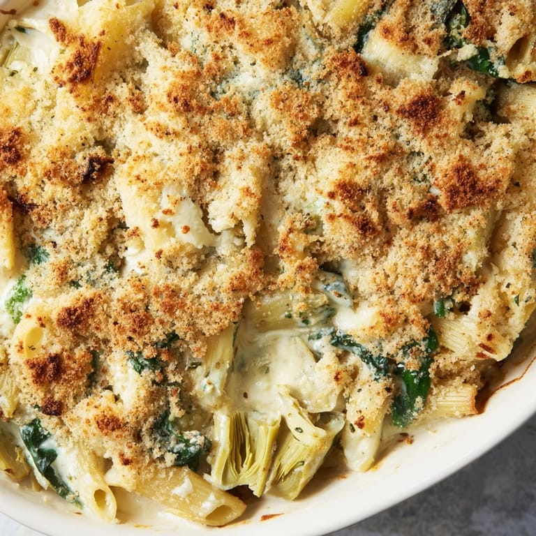 Save There was this Sunday afternoon when I opened my fridge and found a jar of marinated artichokes I'd forgotten about, a handful of spinach that needed using, and leftover pasta from the night before. I wasn't planning anything fancy, but something about the way the light hit the kitchen counter made me want to create something warm and filling. I pulled out a baking dish, turned on the oven, and let my instincts guide me. What came out was this bubbling, golden casserole that smelled like an Italian grandmother's kitchen. That improvised meal became a regular in my home, especially when I need comfort without fuss.