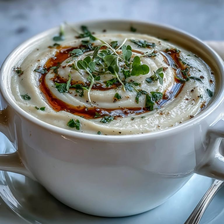 Save There's something almost meditative about standing at the stove with this soup, watching the pale broth gradually transform into something rich and elegant through the simple act of blending. By the time you're ladling it into bowls, you've created something that tastes like it required serious culinary skill, but you know the truth—it just required patience and a few good ingredients treated with respect.