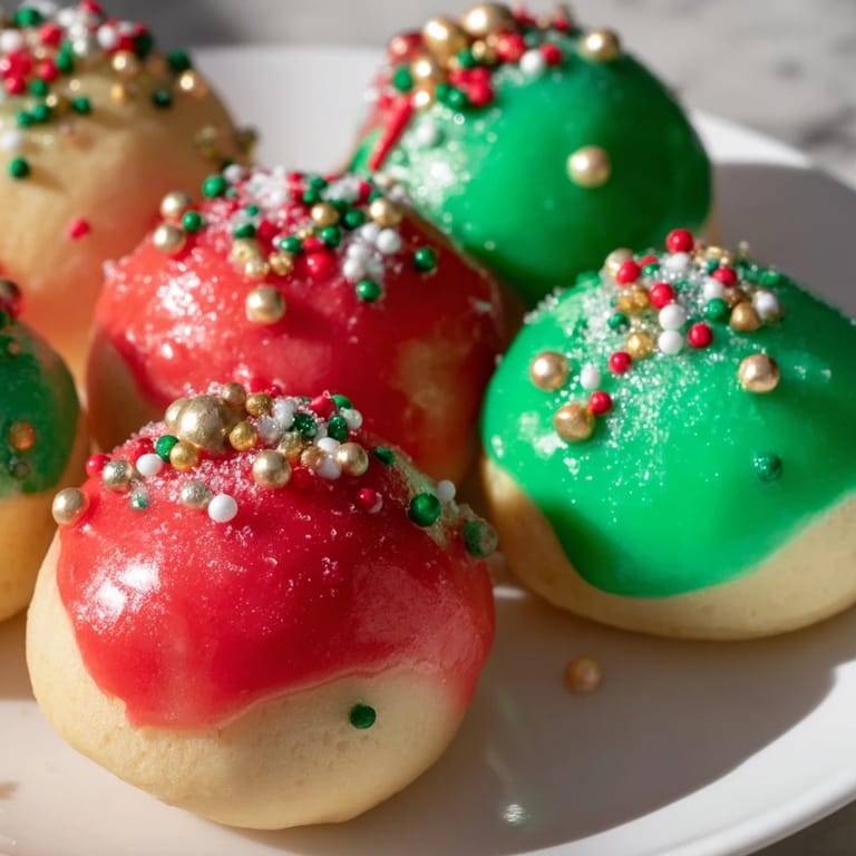 Save Festive, light, and fluffy beignets shaped and decorated like Christmas ornaments—perfect for holiday celebrations and treats.
