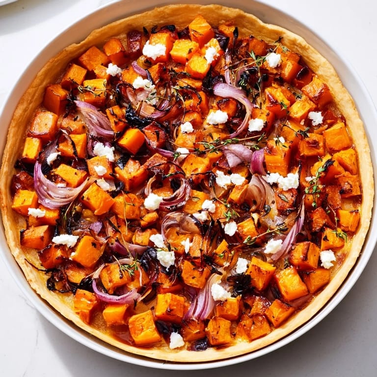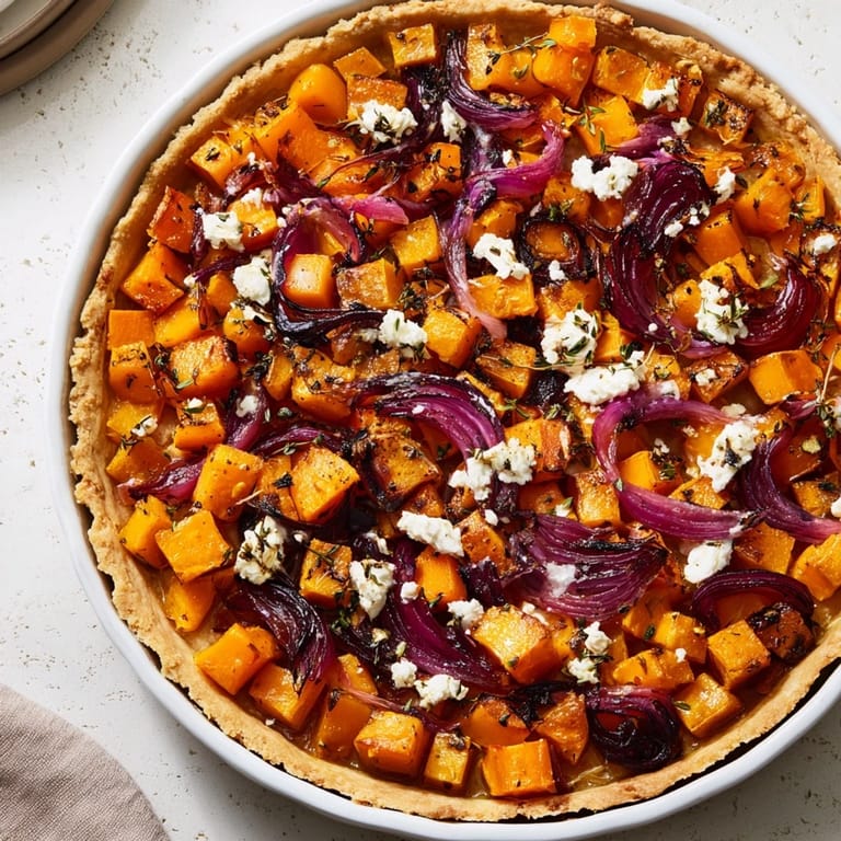 This tart is a wonderful way to highlight fall's best offerings, transforming simple ingredients into a sophisticated centerpiece. The harmonious layers of roasted sweet potato and butternut squash paired with luscious caramelized onions create a comforting yet elegant dish that celebrates the colors and tastes of the season.
