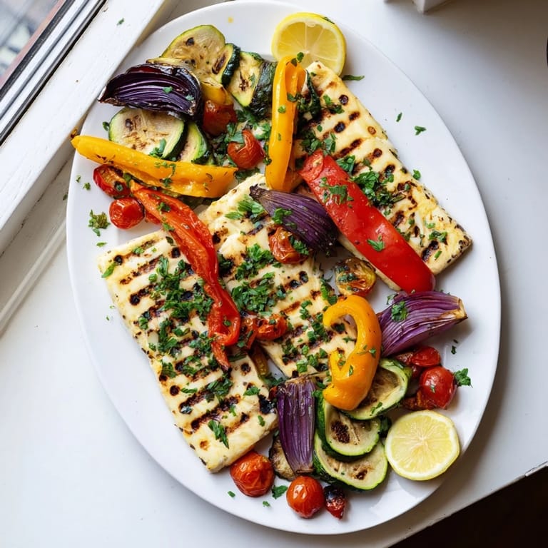 - Layer the grilled halloumi on a platter as your base, then arrange the charred vegetables on top like a colorful tapestry. Scatter the fresh cherry tomatoes over everything for bright pops of color and flavor.
