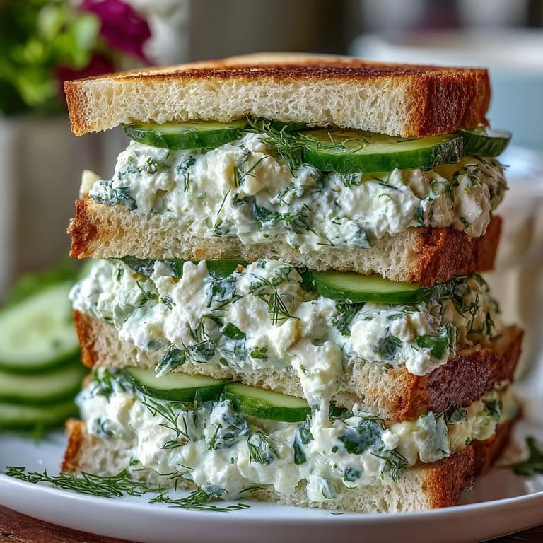 Save My grandmother kept a clipping of this recipe tucked in her recipe box for forty years, wrinkled and splattered from countless Derby day preparations. She'd hum while grating cucumbers, her kitchen suddenly smelling bright and herbaceous in that specific way that meant something elegant was coming together. These sandwiches were her secret weapon for making afternoons feel like occasions, whether we were watching the race or just pretending to celebrate something worth celebrating. The pale green spread caught everyone off guard—they'd expect something heavy, but instead found themselves reaching for another triangle before they'd finished the first.
