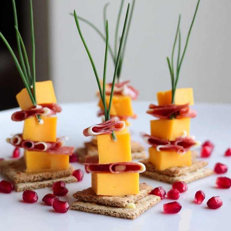 Save I'll never forget the moment I realized appetizers could be art. I was prepping for a dinner party, standing in my kitchen late on a Friday afternoon, when I decided to stack cheese and meats on crackers in a way that told a story. As I arranged those first few pieces vertically, something clicked—this wasn't just finger food, it was edible architecture. My guests arrived, and before anyone even tasted anything, they gathered around the platter, enchanted by what looked like a glittering cityscape you could actually eat.