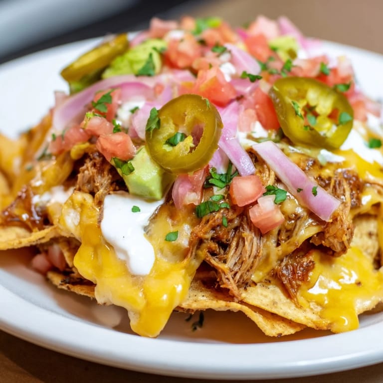 Save The first time I made loaded nachos for a group of friends, I realized that the magic wasn't in having fancy ingredients—it was in the balance of textures and temperatures hitting your palate all at once. I'd spent an hour perfecting a homemade queso sauce while they arrived early, chatting in my kitchen, and the moment I drizzled that silky cheese over crispy chips piled high with tender pulled pork, someone let out a genuine groan of anticipation. That sound told me everything about why this dish has become my go-to for gatherings.