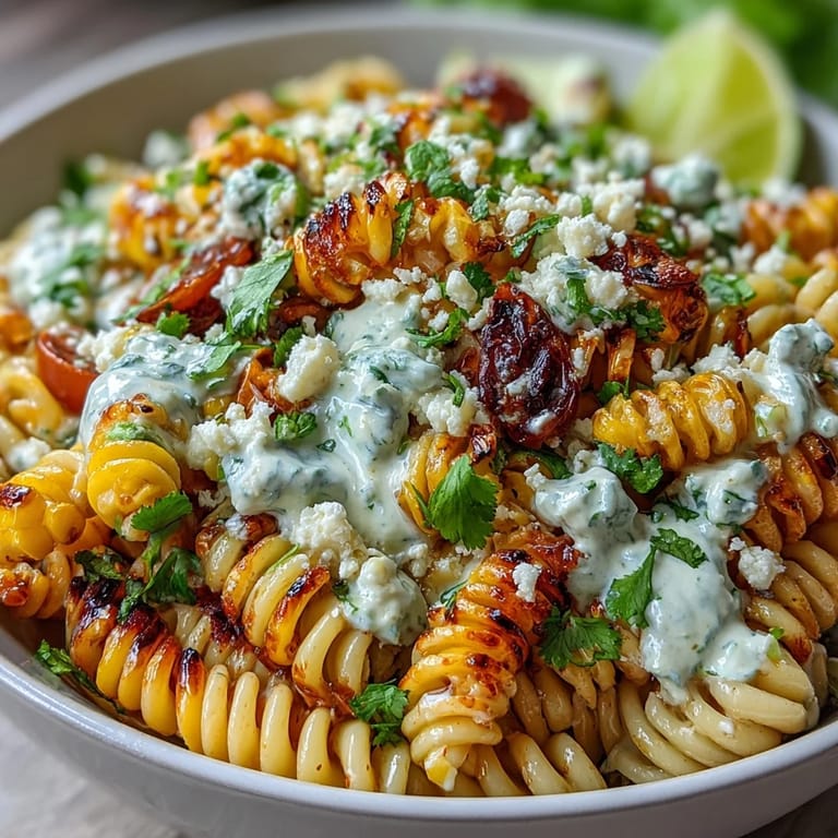 Save Imagine the vibrant flavors of Mexican street corn—smoky, tangy, and irresistibly creamy—transformed into a pasta salad that's perfect for summer gatherings, potlucks, or a quick weeknight side. This Mexican Street Corn Elote Pasta Salad captures all the beloved elements of elote: charred corn kernels with their caramelized sweetness, crumbled cotija cheese, a zesty lime dressing, and a kick of chili spices. The best part? No mayonnaise here—just a bright combination of sour cream and Greek yogurt that keeps things light yet indulgent. Whether you're feeding a crowd or meal-prepping for the week, this colorful dish delivers bold flavors in every bite.