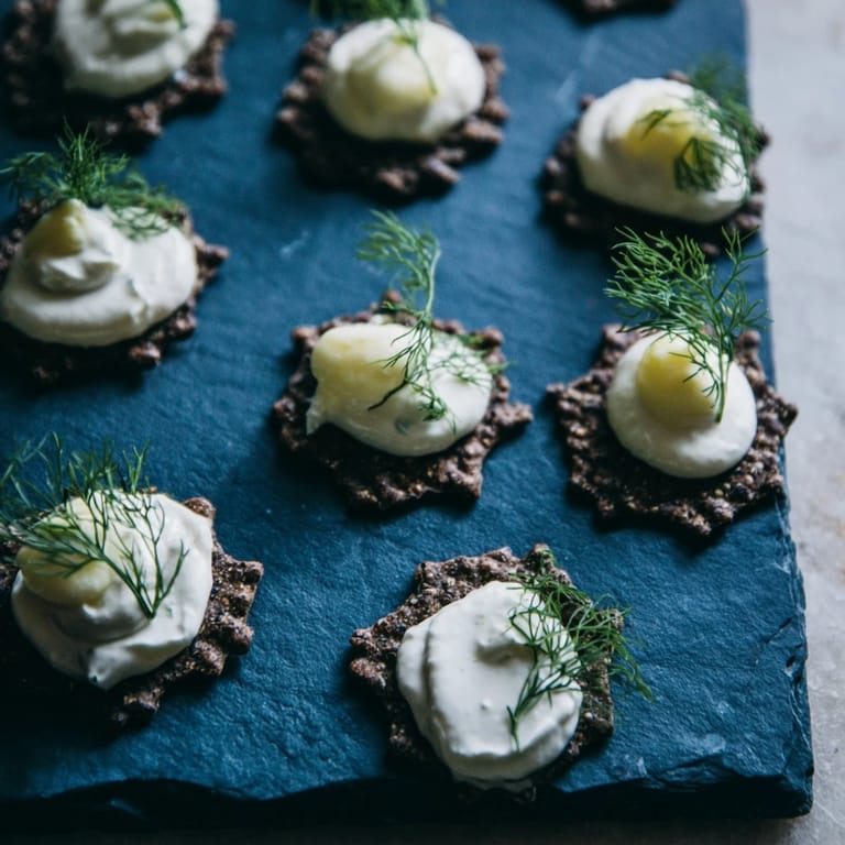 Save I discovered this dish at a gallery opening on a grey afternoon, and what caught me wasn't the art on the walls but the appetizer table itself. Someone had arranged these dark, dramatic crackers with pillowy white cheese dollops on a slate platter, and it genuinely looked like a stormy sea frozen mid-motion. I remember standing there, plate in hand, struck by how something so simple could feel like edible theater. That night, I decided I had to recreate it at home, not to impress anyone particularly, but because the image had stuck with me and I wanted to understand how it was made.