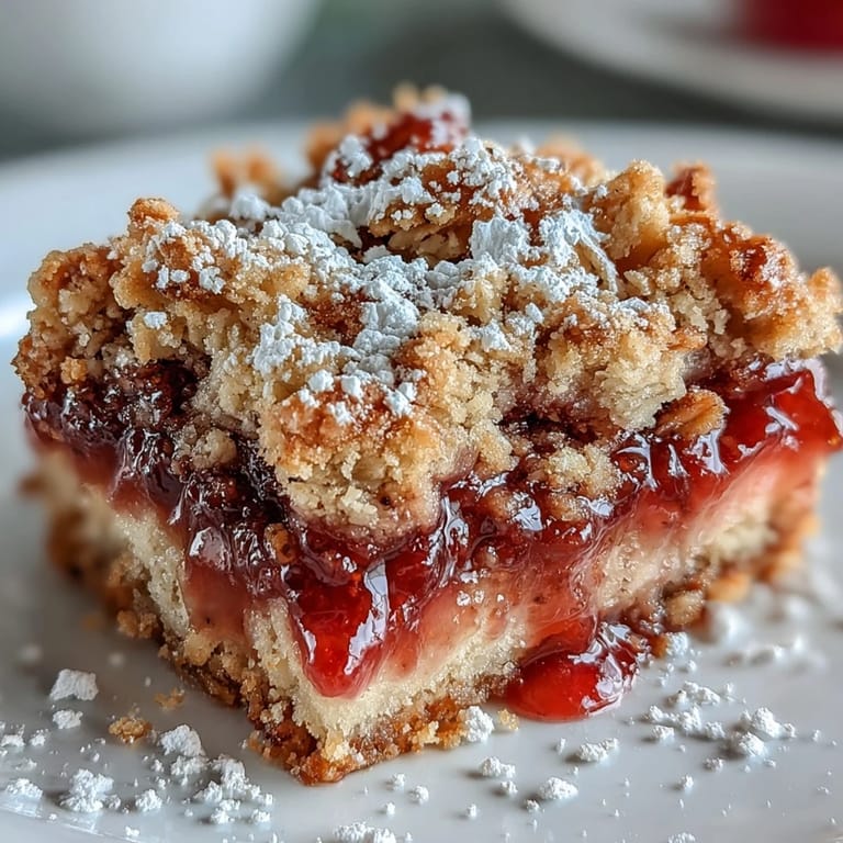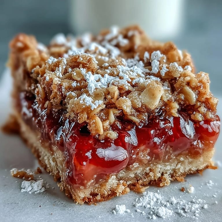 Save It was a quiet rainy Saturday when I made a batch just for myself while listening to the sound of raindrops on the window. Something about the scent of strawberries and butter mingling in the air made the house feel twice as cozy. By the time I curled up with a bar and a cup of tea, I decided these bars could turn any gloomy afternoon cheerful. I’ve since made them as little pick-me-ups or edible hugs for friends who needed extra comfort. They remind me that sometimes, the simplest desserts are the ones that linger in memory.